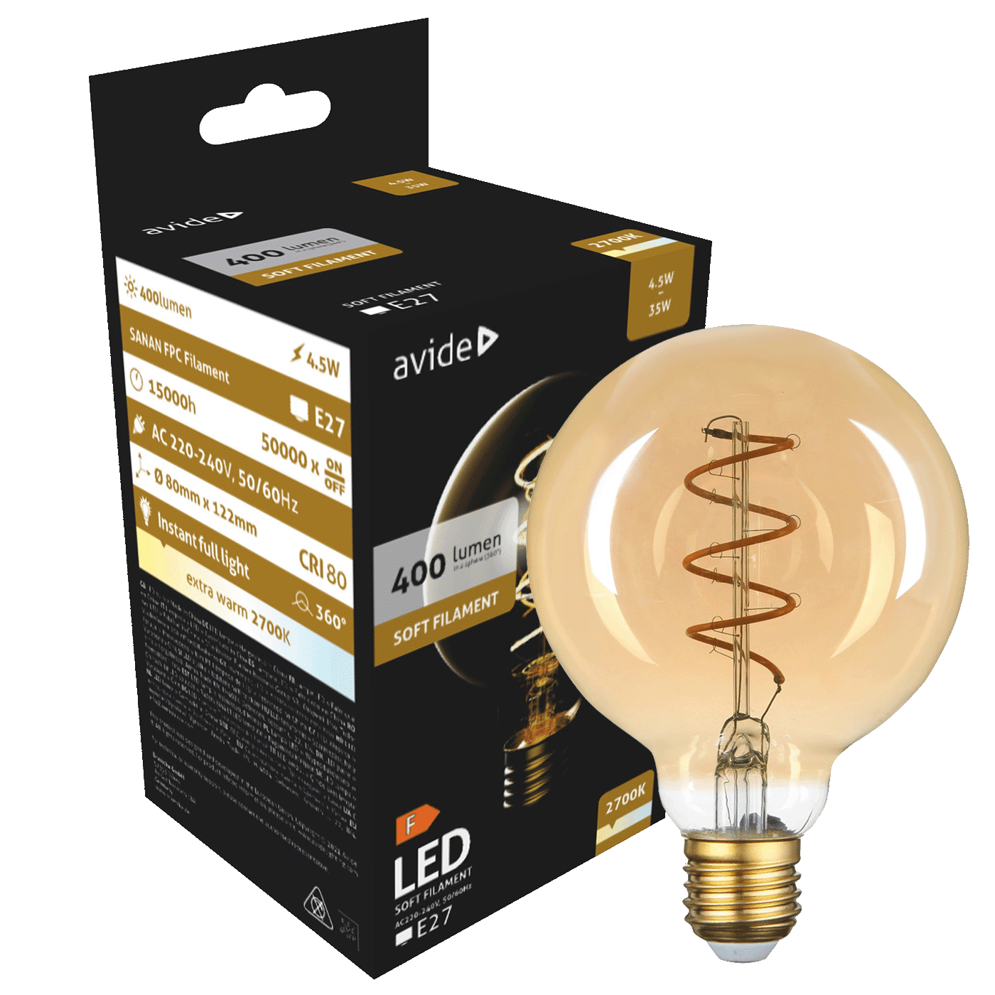 Avide Žarulja,LED,4.5W,E14,2700K,230V AC,topla bijela svjetlost – Soft Filament G80 4.5W E27