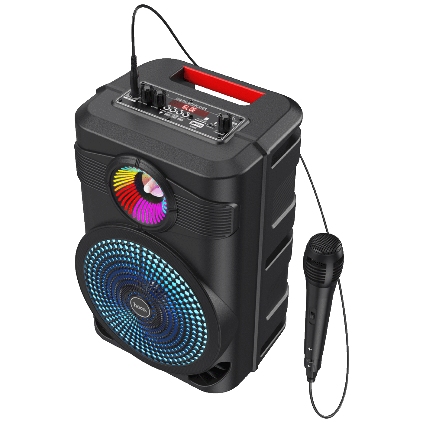Prijenosni zvučničk HOCO BS46 Mature outdoor BT sinonim je za nezaboravne trenutke i zabavu. Bez obzira radi li se domu, studentskoj zabavi ili izletu. Uređaj vam omogućava da puštate glazbu i vaše omiljene numere sa USB uređaja. Funkcionalnost uređaja povećava se Bluetooth vezom koja omogućuje kreiranje omiljenih playlista koje se pohranjuju na vašem pametnom telefonu bez nepotrebnih dodatnih kablova! Opremljen je niskofrekventnim zvučnikom od 8 inča, koji pruža nevjerojatno bogat zvuk od 10 W. Vesela svijetla dodatnu notu večernjoj atmosferi. Prijenosni HOCO Mature outdoor BT zvučnik BS46 nije samo zvučnik več i mini-karaoke sustav. S takvim dodatkom nije loša ideja doći na zabavu ili u društvo najbližih prijatelja. • Bluetooth 5.0. Blue trum AB5362B. • Vrijeme reprodukcije 3 sata. • Zvučnik 8″, snaga 10W. • Kapacitet baterije 1800 mAh • Podržava BT, FM, USB, TF karticu, AUX, TWS i druge načine reprodukcije. • Podržava žičani mikrofon. • Neovisni prekidač svjetla u boji. • Dimenzije: 381 x 236 x 203 mm garancija 12 mjeseci