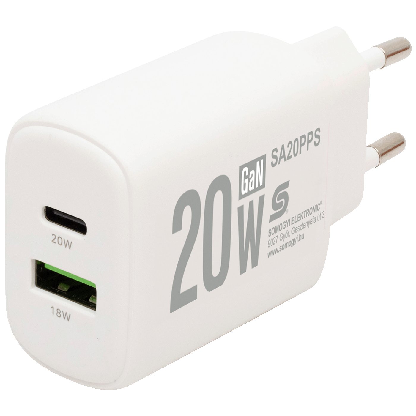 home Punjač kučni, brzi, 1 x USB-A, 1 x USB-C, 20W, GaN – SA20PPS