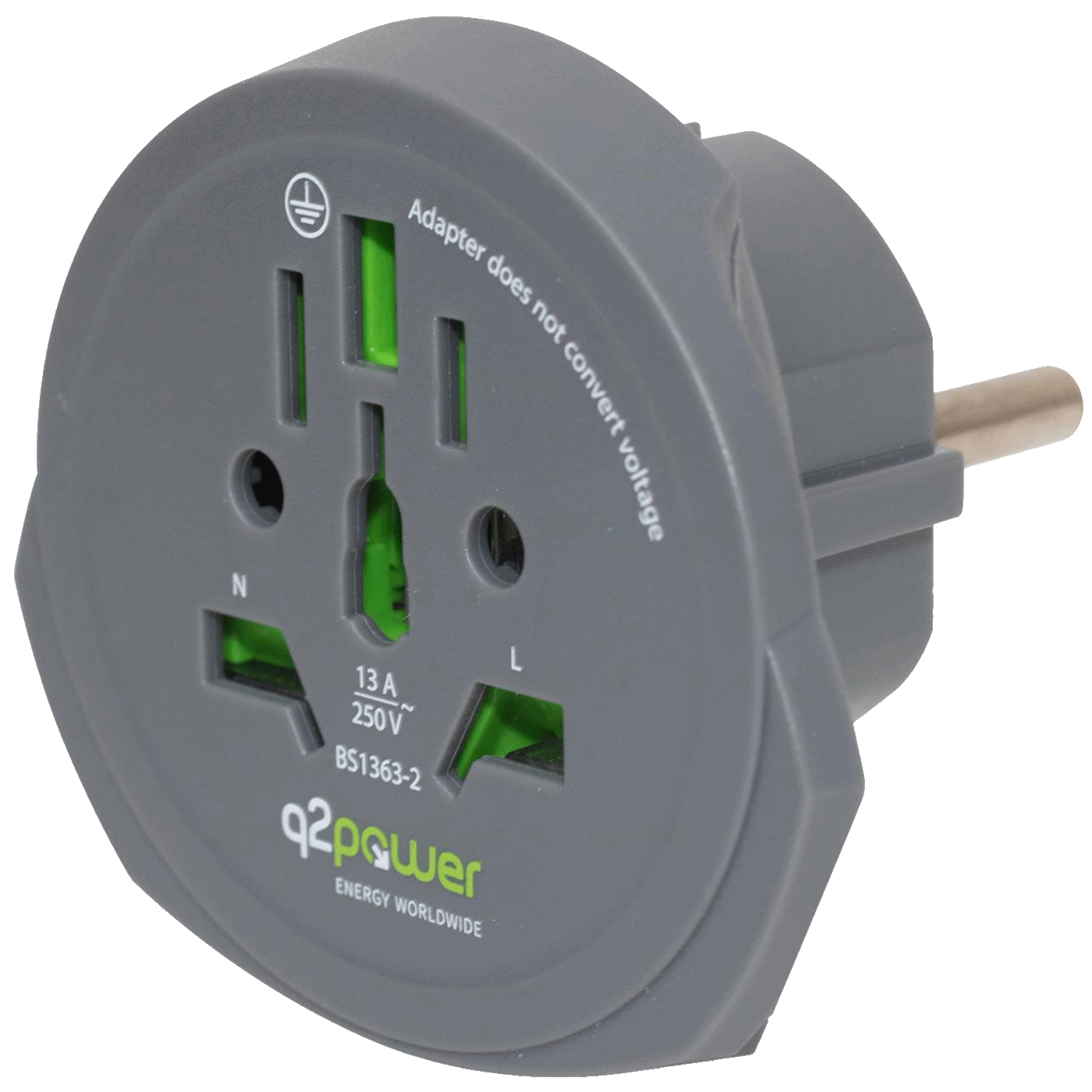Putni adapter Q2 Power 1.100100-TH izrađen je u pouzdanom i estetskom dizajnu. Ako putujete u inozemstvo, ne zaboravite nabaviti odgovarajući putni ispravljač za punjenje električnih uređaja. Izlazna utičnica adaptera je standard AUS/CHINA, IT, UK, CH, BRAZIL, USA. Ulazni utikač je EUR standard. Snaga mu je 100 V- 1600 W/ 250 V- 4000 W. Može se opteretiti do maksimalno 16 A. • Uzemljeni utikač • ulazni utikač EURO • izlazna utičnica AUS/KINA, IT, UK, CH, BRAZIL, SAD, EURO (samo neuzemljena) • nazivni napon 100-250V • nazivna struja 16 A • nazivna snaga 100 V – 1600 W / 250 V – 4000 W garancija 12 mjeseci