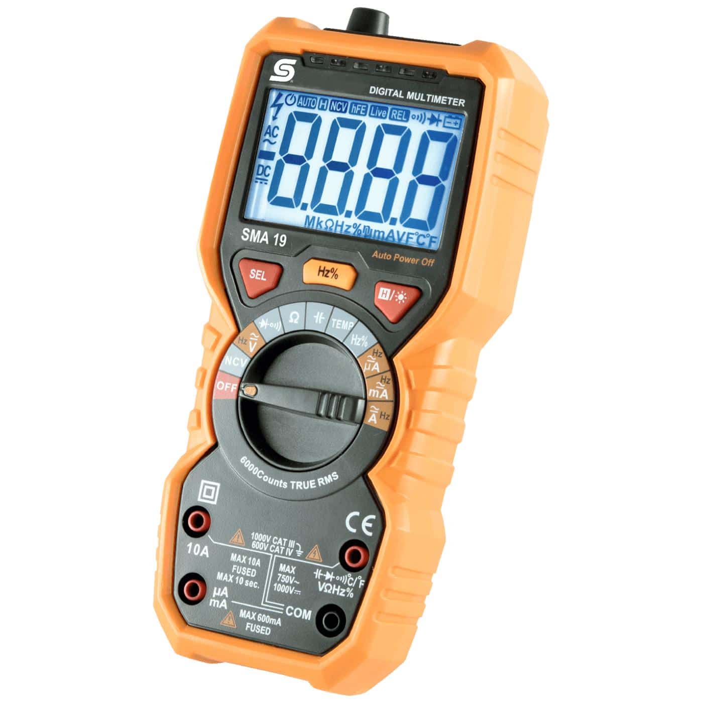 Digitalni mjerni instrument, ručni multimetar, automatska promjena mjernog opsega, Napajanje 4 x 1.5 V AA baterije. Upotrebljivo za mjerenje jednosmernog, naizmeničnog napona i struje, otpora, kapaciteta, frekvencije, temperature, bezkontaktno ispitivanje faze, ispitivanje diode, mjerenje tranzistora, kategorija mjerenja CAT VI 600 V, CAT III 1000 V, dimenzije 190 x 89 x 50 mm garancija 12 mjeseci