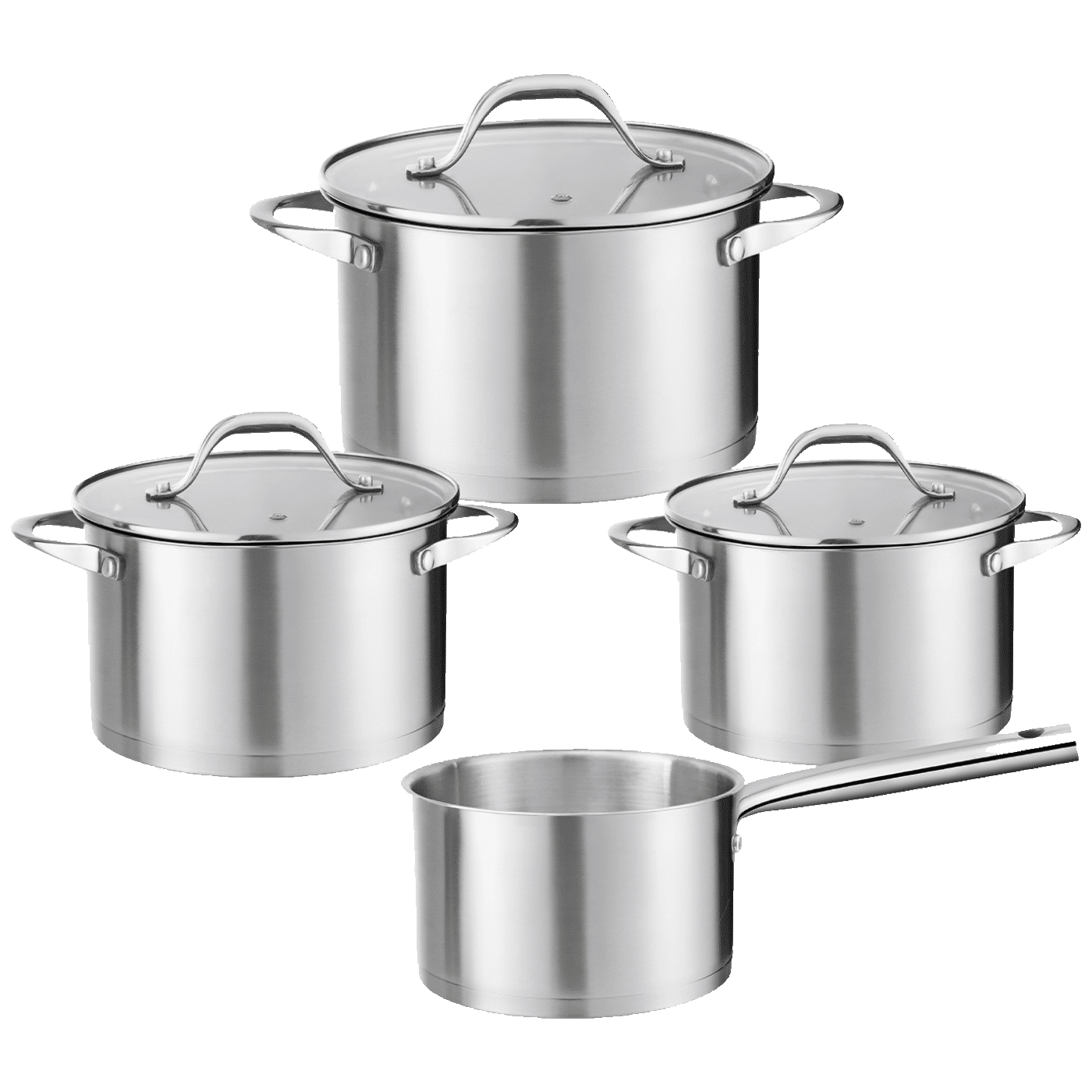 Set posuđa od 7 komada od nehrđajućeg čelika, ZLN1344 • Lonac 16 x 9,5cm bez poklopca • Lonac 16 x 9,5cm sa poklopcem • Lonac 20 x 12,5cm s poklopcem • Lonac 24×14,5cm sa poklopcem • Udobna ručka • Termostabilno dno brzo i ravnomjerno provodi toplinu • Višeslojno tijelo i baza od nehrđajućeg čelika 18/10 Višeslojno tijelo i dno od vrhunske kvalitete 18/10 (SS304) s aluminijskom jezgrom • Može se koristiti na svim vrstama ploča za kuhanje, uključujući indukciju • Poklopac od kaljenog stakla s izlazom za paru • Može se prati u perilici posuđa garancija 24 mjeseci